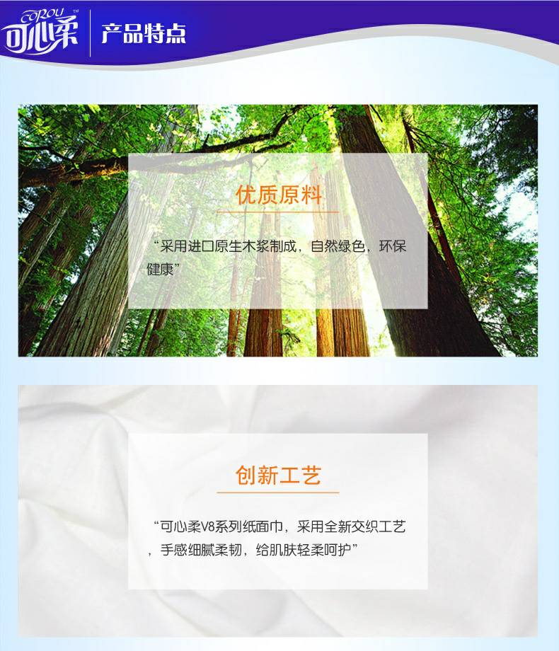 可心柔 V8系列CoRou云柔系列白色木浆110抽