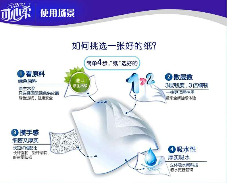 可心柔 V8系列CoRou云柔系列白色木浆60抽